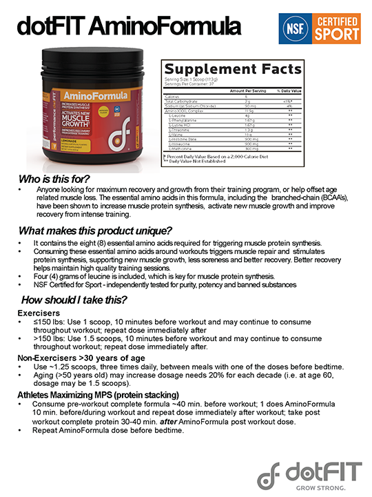 AminoFormula Product Dietary Support Reference Guide (PDF)