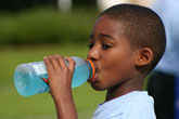 Maintaining proper fluid balance is essential for every athlete since small levels of dehydration can negatively impact performance.  Not getting enough fluids, high humidity or environmental temperature can interfere with the body’s ability to maintain a normal temperature. This can lead to heat-related illness and death.  Youth athletes may be at greater risk for dehydration because they do not tolerate heat as efficiently as adults due to immature sweat glands or lower sweating capacity.  Children are more prone to heat illness because they absorb heat more readily than adults.  Also, the thirst mechanisms of children and adolescents are not fully developed so young athletes typically do not consume enough fluid before and during exercise.  Therefore, youth athletes will require more supervision to ensure they follow all fluid recommendations closely and consistently. During most activities, adequate water intake can help prevent dehydration and heat exhaustion.  However, during endurance events or activities greater than 60 minutes, a sports drink with carbohydrates provides fuel for the nervous and muscular systems, and may enhance performance.  During multiple daily workouts and very long endurance events (e.g. ultra marathon) in which sweat losses are high, carbohydrate and electrolyte (e.g. sodium, potassium) intake is required.