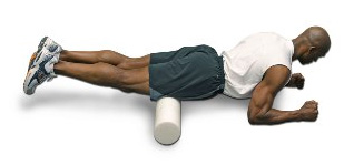 1. Start in a kneeling position with the foam roll oriented horizontally in front of your knees.  Now lie across the foam roll so that it is just above your knees and your forearms are on the floor with your elbows bent.  Pull your body forward and lateral with your arms, slowly rolling until tenderness is felt.  If tender areas are identified, hold for approximately 30 seconds.