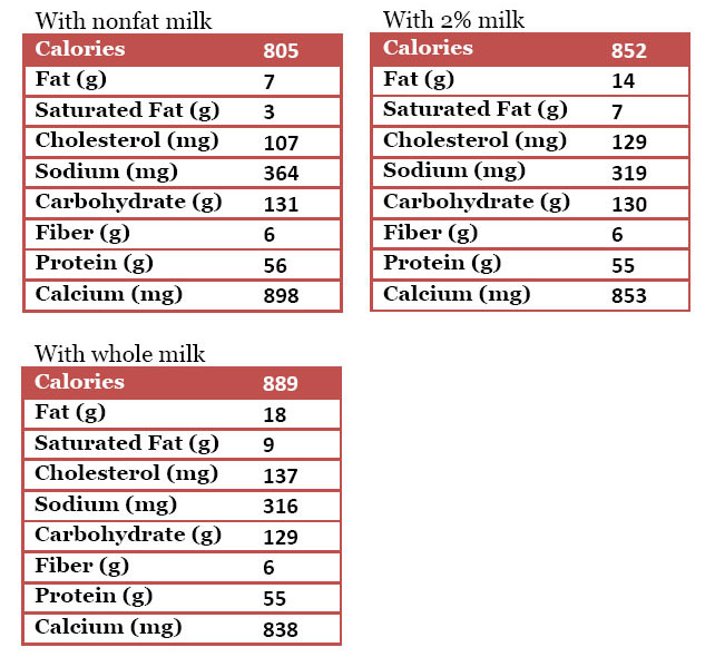 • 1  1/2 cups nonfat, 2% or whole milk (or any milk substitute of your choice)
