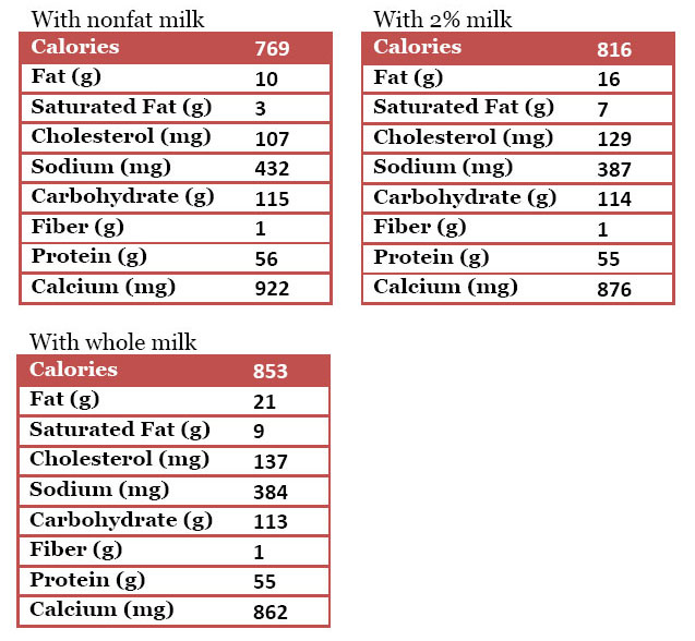 • 1  1/2 cups nonfat, 2% or whole milk (or milk substitute of your choice)