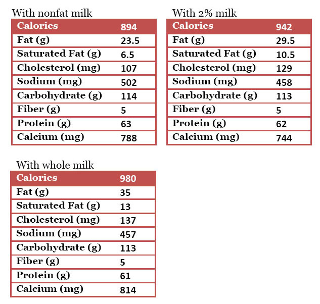 • 1  1/2 cups nonfat, 2 % or whole milk (or milk substitute of your choice)