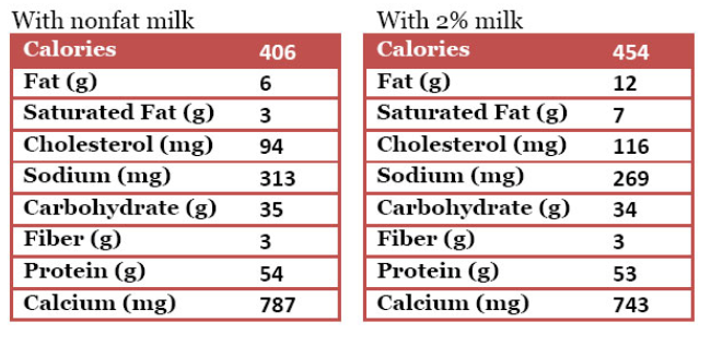 • 1  1/2 cups nonfat or 2% milk (or milk substitute of your choice)