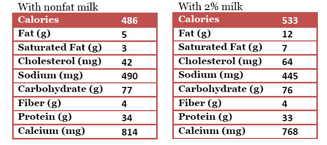 • 1  1/2 cups nonfat or 2% milk (or any milk substitute of your choice)