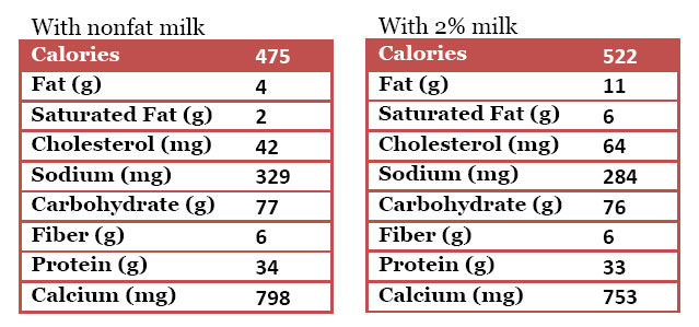 • 1  1/2 cups nonfat or 2% milk (or milk substitute of your choice)