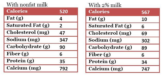 • 1  1/2 cups nonfat or 2% milk (or milk substitute of your choice)