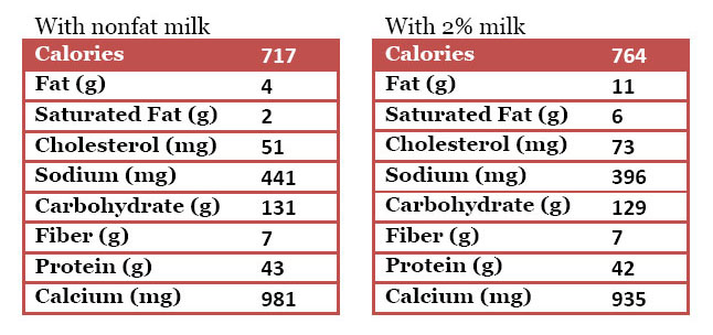 • 1  1/2 cups nonfat or 2% milk (or milk substitute of your choice)