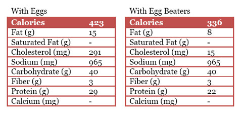 1 jumbo egg plus 3 egg whites, beaten or 1/2 c. Egg Beaters or other egg substitute