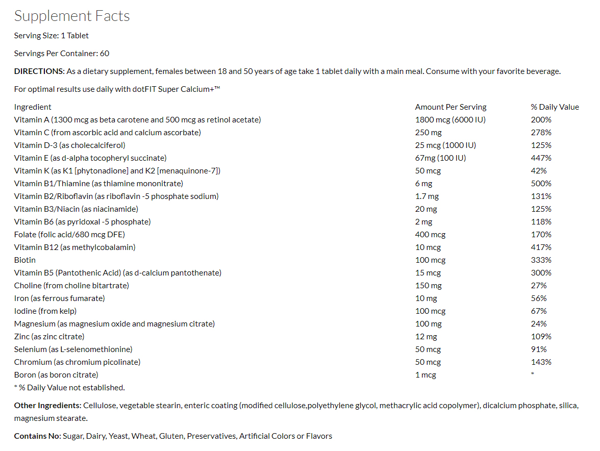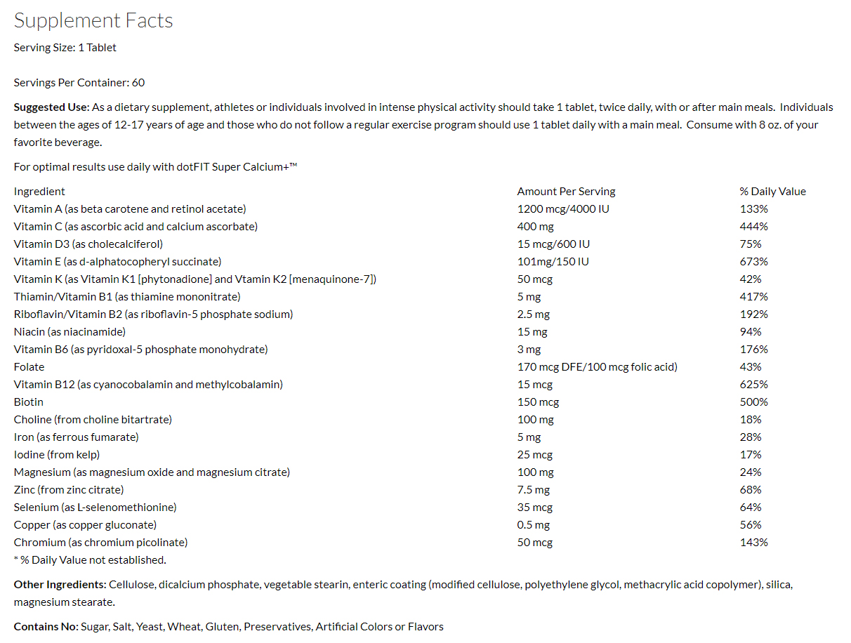 Men and women up to age 50 would use formulas based on diet, activity and gender. After 50, for the majority of the population, the formula would be the same, with the exceptions being vegans (pure vegetarians), very active adults, and clinical exceptions based on medical conditions. Below, under the category of Women, shows the ideal amounts of vitamin and minerals that would be contained in a tablet for the average non-pregnant or lactating women up to age 50. Under the category Active, you’ll find the proper amounts for all adult active exercisers/athletes up to age 65. The Over 50 category is for all other adults over 50. The formulas below are supported by the best current evidence and in line with Institute of Medicine’s (IOM) current recommendations.
