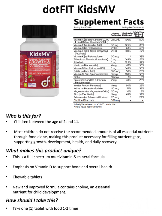 Kid's MV Product Dietary Support Reference Guide (PDF)