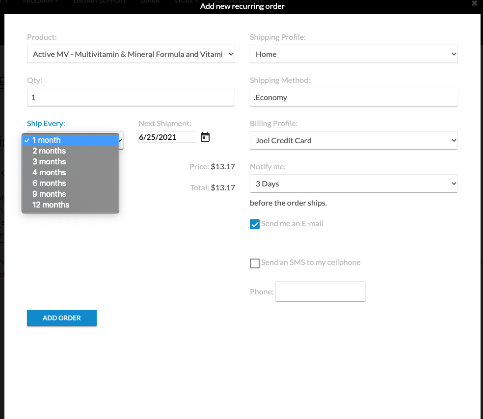 Setup Your Recurring Order